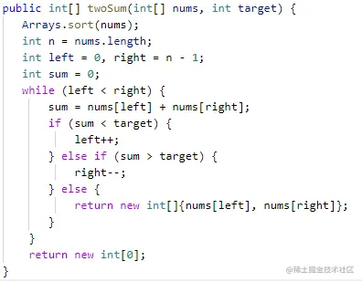 现在我们并不需要返回下标,那有其他解法吗?当然,这就我们今天要讲的重点:双指针。