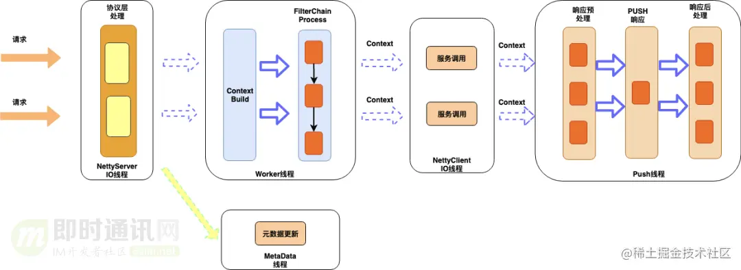 基于 Netty 的优势,我们实现了全异步,无锁,分层的架构。