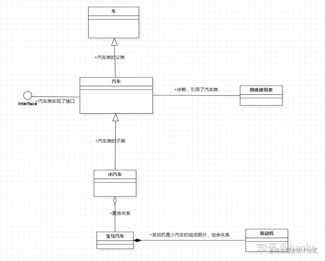 - 空心(圈):聚合关系 群体与个体关系 Aggregation