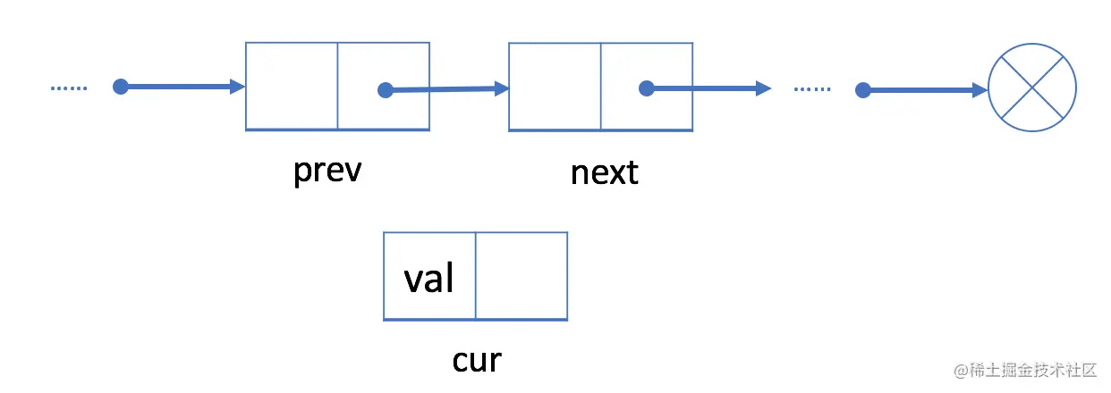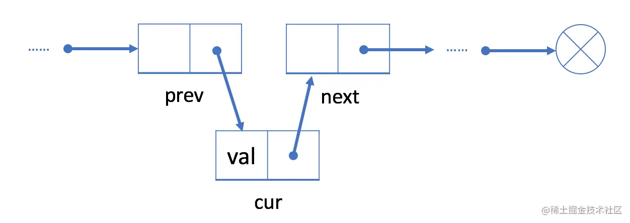 cur的上一个节点prev及其下一个节点next