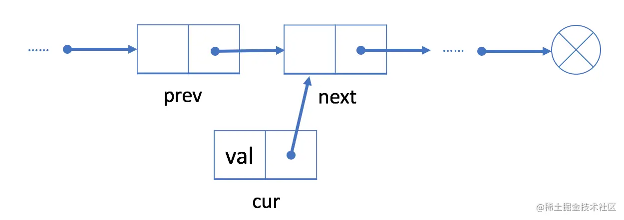 cur的next字段链接到prev的下一字段next
