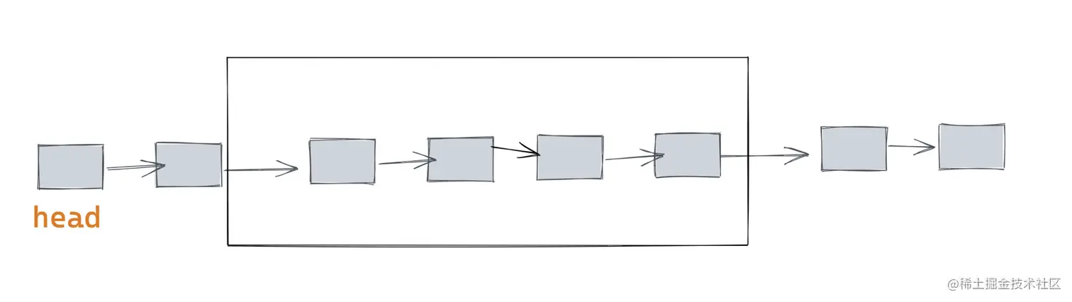 // 1->2->3->4->5->6 fast 跳2步,slow到3,rHead = 4->5->6