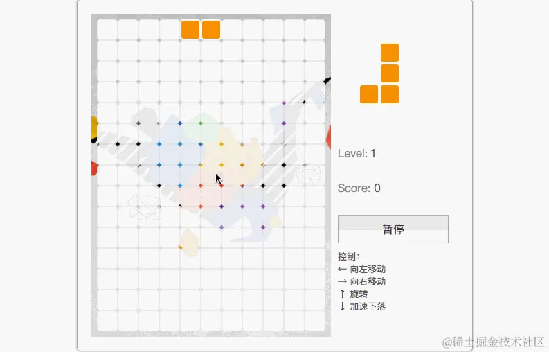 这个俄罗斯方块是我进化以来,第一个自主完成的小游戏,每段代码都是自己敲出来的。 除去注释说明,总共有接近八百行代码。 对于当时刚学编程不久的我来说,这个小游戏给我了极大的鼓舞,很有成就感!