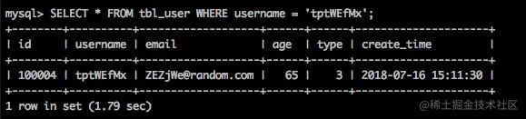 insert into tbl_user values ((start+i) ,rand_string(8), concat(rand_string(6), '@random.com'), 1+FLOOR(RAND()*100), 3, now());