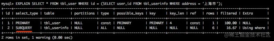 - subquery: 子查询内层第一个SELECT,结果不依赖于外部查询