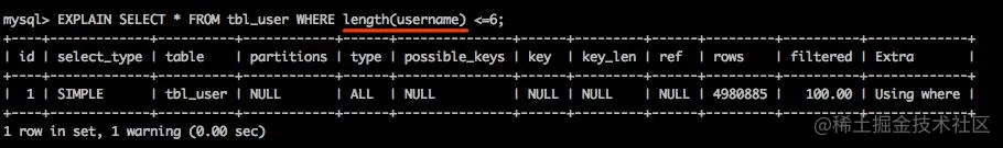 5. 对条件计算(使用函数或者算数表达式)不走索引