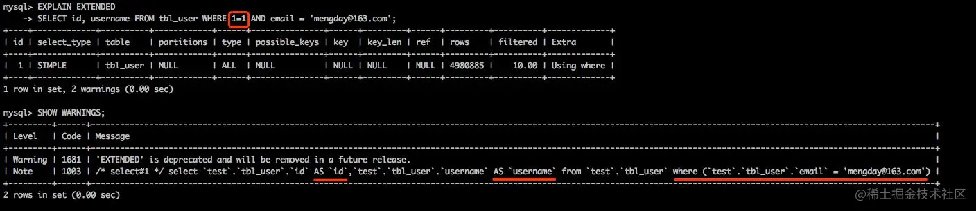 重新定义表的关联顺序(优化器会根据统计信息来决定表的关联顺序)将外连接转化成内连接(当外连接等于内连接)使用等价变换规则(如去掉1=1)优化count()、min()、max()子查询优化提前终止查询in条件优化mysql可以通过 EXPLAIN EXTENDED 和 SHOW WARNINGS 来查看mysql优化器改写后的sql语句