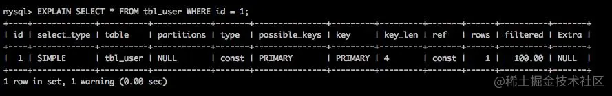 - const: 表最多有一个匹配行, 常见于根据主键或唯一索引进行查询