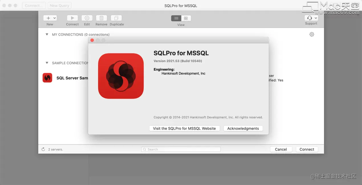SQLPro for MSSQL Mac特别版是一个轻量级TDS客户端,允许快速和简单地访问Microsoft SQL服务器(sqlserver),包括Azure中托管的那些。此客户端并没有使用MySQL。请确保您的服务器是Microsoft SQL服务器。