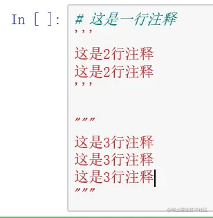 注释用来在代码中添加解释说明,方便你我他,单行注释用#表示,多行注释用一对三引号‘’‘‘’‘或 “”” “”” 表示