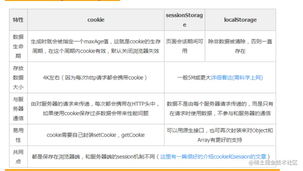 cookie、localstorage、sessionStorage的区别