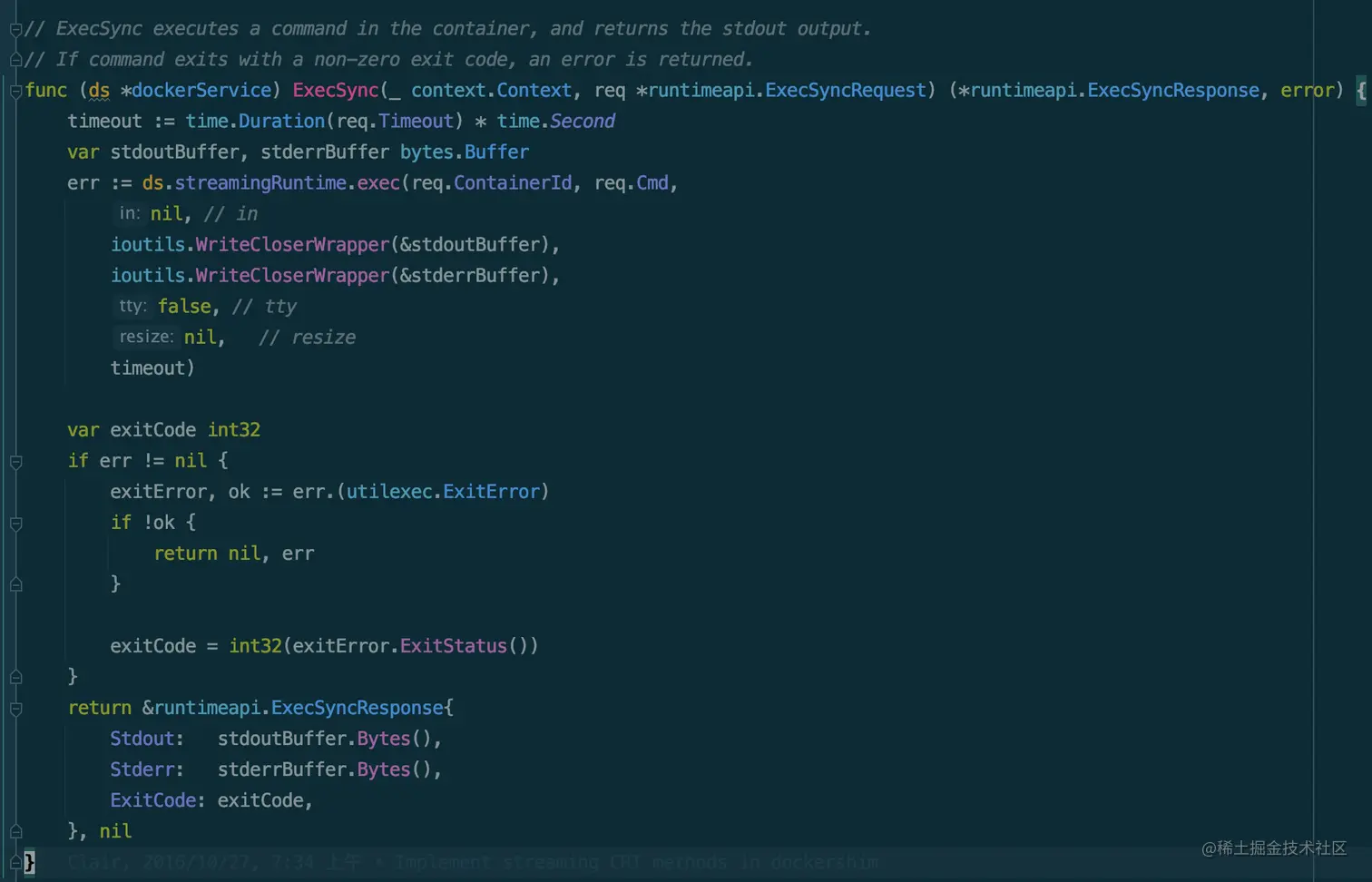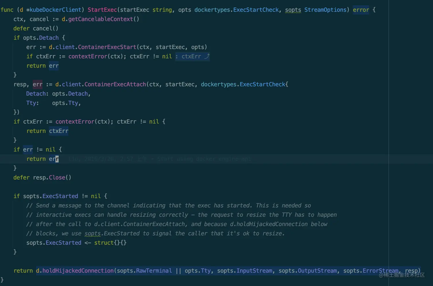 - 调用 StartExec 执行 exec,并通过 holdHijackedConnection 来重定向输入输出。将 inputStream 写入到 connection,并将 response stream 重定向到 stdout,stderr。