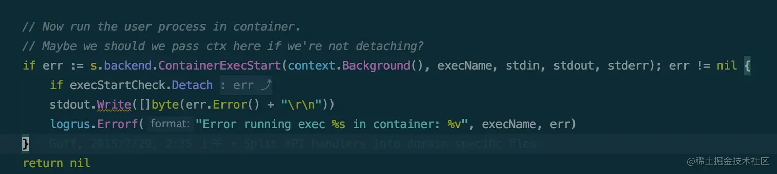 那么日志中打印的报错就是 response stream 传递过来的字符流。也就是说,dockerd 的 response 中包含了错误值。