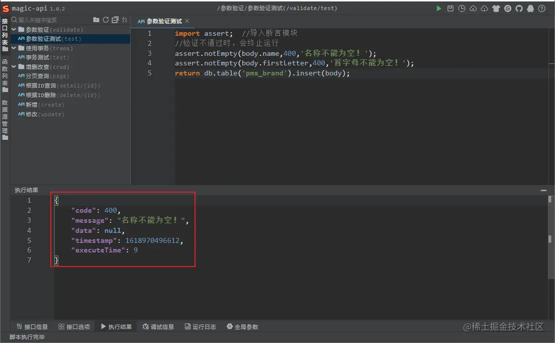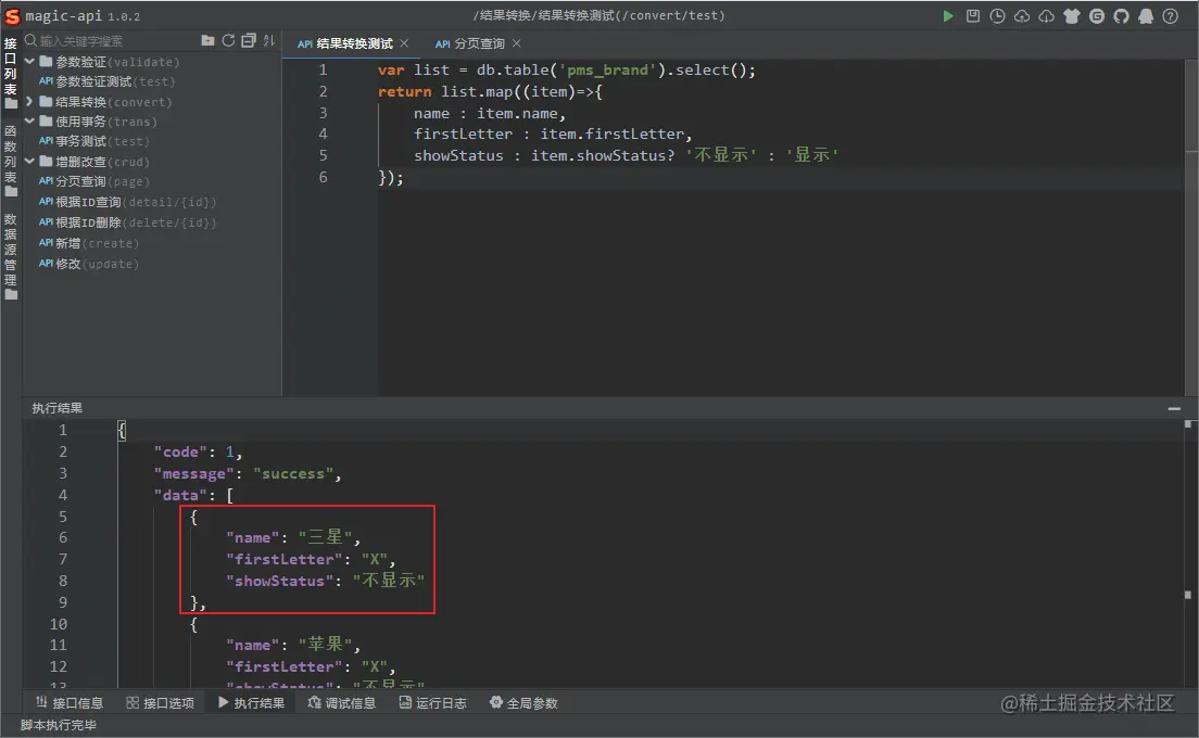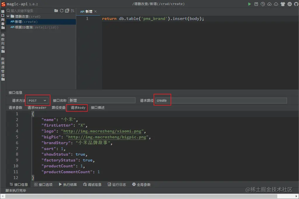 magic-api开发接口的快感!使用magic-api开发API接口,仅需在界面中使用magic-script脚本即可。
