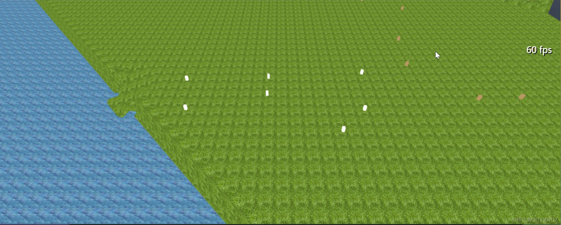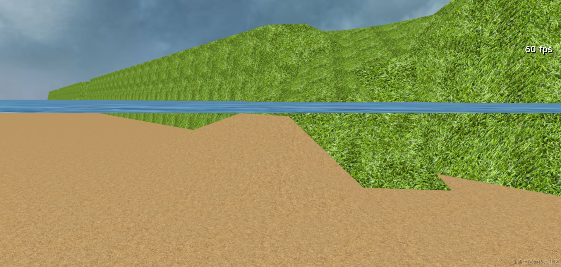 水下为沙土材质,沙土材质网格贴合地形,河流材质网格则保持水平。