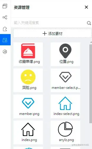 下载好了之后,我们需要把图标上传到我们的素材库以备后续进行使用,可以点击左侧菜单栏的资源管理,将下载好的素材上传上去