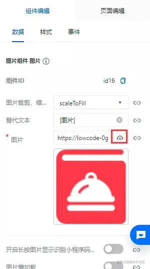 现在图片是默认图片,我们可以将图片修改成使用素材库的图片,选中图片组件点击云朵的图片使用素材库的图片即可