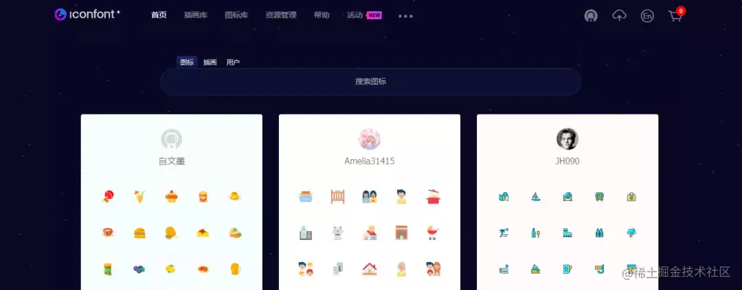 一般的小程序首页会放置具体可以操作的功能,我们以图标的形式引导用户进行点击,首先我们开发菜谱管理的功能,图标的话我们可以去iconfont上下载,可以免费使用