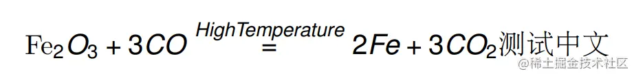 之前我们直接在chemfig公式后面直接输入中文,由于chemfig有明显起始判断,我们的中文latex并没有识别为公式的一部分,所以能正常显示,一旦我们在公式内部使用中文,仍然会出现中文无法渲染的问题,不过这个问题在katex下是不存在,应当是katex做了适配