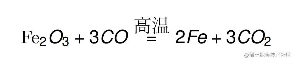 Fe_{2}O_{3} + 3 C O \stackrel{HighTemperature}{=} 2 F e + 3CO_{2}$测试中文