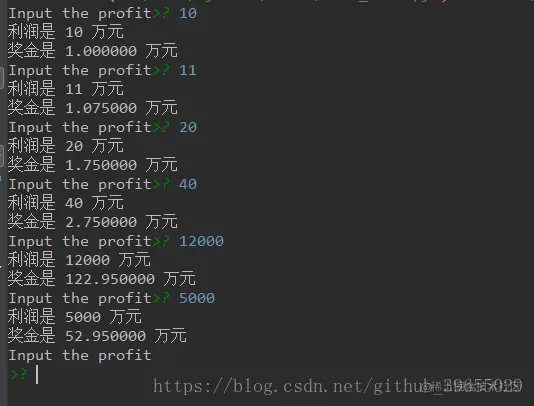 进入死循环,然后输入企业利润,然后计算出每一阶段利润内所对应奖金并保存在一个变量中,最后输出保存奖金的变量值即可;