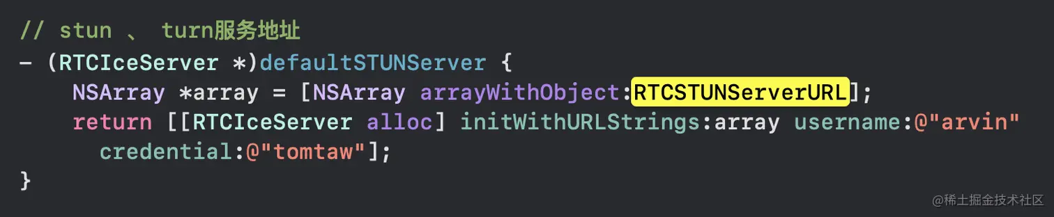 如果我们的计算机连接到NAT层,则需要我们的公共IP /端口来创建ICE候选对象。因此,WebRTC 使我们能够在初始化 WebRTC 连接时指定STUN服务器 URL: