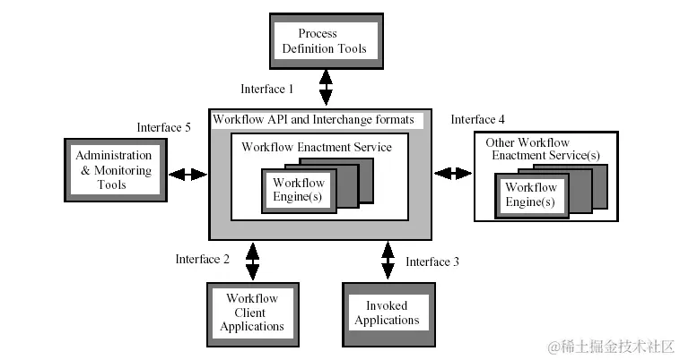 工作流定义文件描述了业务的交互逻辑,工作流引擎通过解析此工作流定义文件按照业务的交互逻辑进行业务的流转,工作流引擎通常通过参考某种模型来进行设计,通过调度算法来进行流程的流转(流程的启动、终止、挂起、恢复等),通过各种环节调度算法来实现对于环节的流转(环节的合并、分叉、选择、条件性的选择等)。