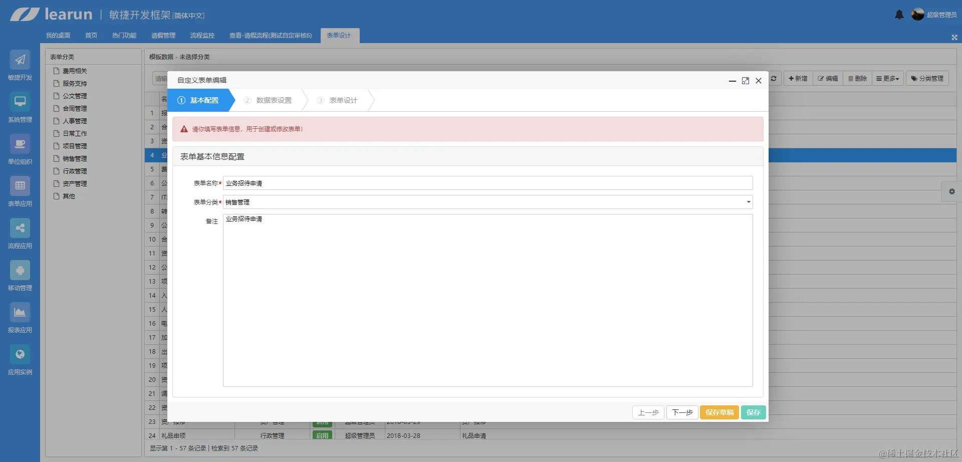 通常,业务流转需要通过表单来表达实际的业务,因此需要与表单进行集成来实现业务意义,与表单的集成通常包括表单数据的自动获取、存储、修改,表单域的权限控制、流程相关数据的维护以及流程环节表单的绑定。