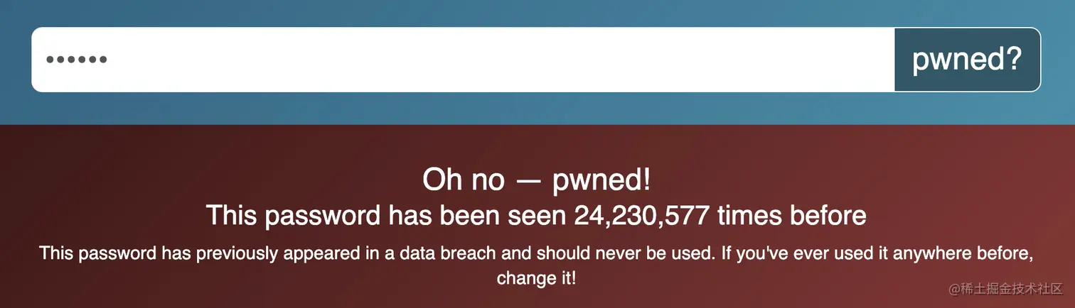 在Have I Been Pwned上可以查到,"123456"这个密码已经被使用了24,230,577次
