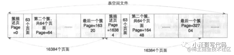 一个段(Segment)又由很多的簇(也可以叫区)组成,每个区的大小是 1MB(64个连续的页)。