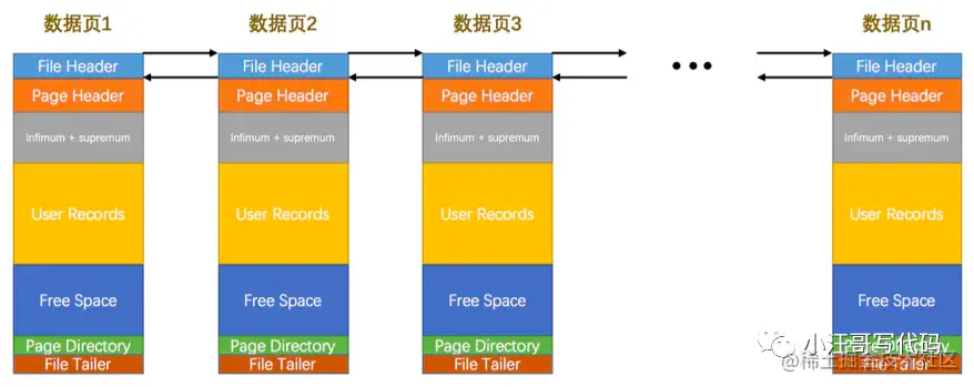 InnoDB也为了不同的目的设计了若干种不同类型的页面。Undo日志页 、段信息节点、nsert Buffer空闲列表、Insert Buffer位图、系统页、索引页,也就是我们所说的数据页等。