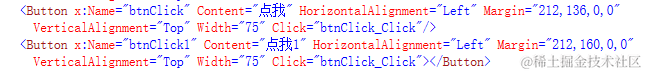 <Button x:Name="btnClick1" HorizontalAlignment="Left" Margin="212,160,0,0" VerticalAlignment="Top" Width="75" Click="btnClick_Click">