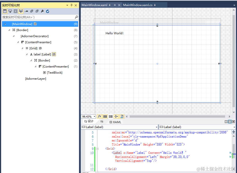 2、在WPF中,XAML用来开发用户界面。相对XML在语法上有一定的创新,同时继承了XML的Tag,Attribute等语法。