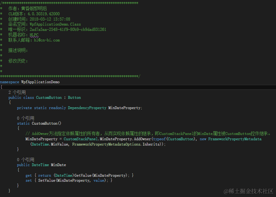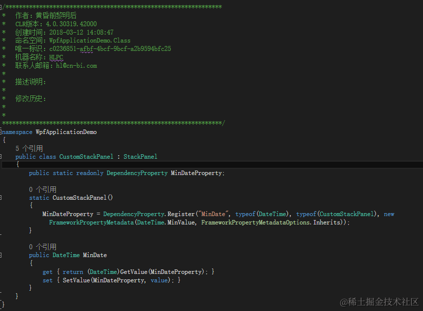 既然说WPF中绝大多数的属性都是依赖项属性,我看了一下依赖属性怎么进行创建。