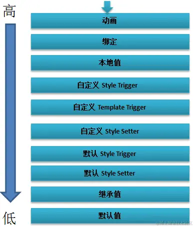 下面的图是在网上找的依赖属性优先级列表图,大家后面再使用属性时可以留意一下优先级。