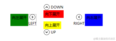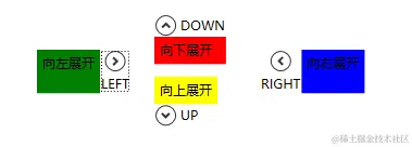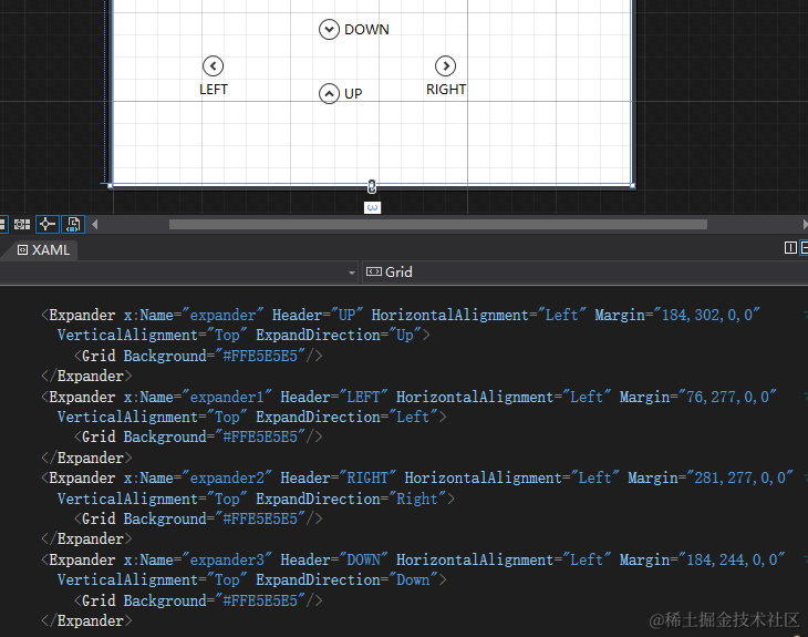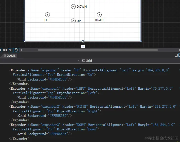 我定义了4个Expender,展开内容使用了4种不同颜色标注。分别是不同方向的展开方式,注意展开方向的使用ExpandDirection控制着在,然后内容各自镶嵌的自己的东西,就是这么简单,最后,看一下程序结果。