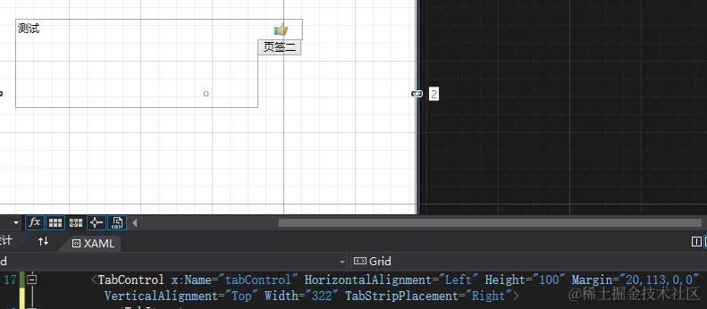 TabItem是代表TabControl中的一页,在一个TabControl中需要多少页就要靠自己添加。默认的页签是字符串,例如:页签一,看一下TabControl长什么样