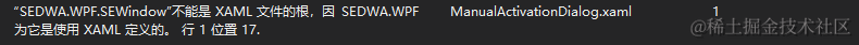 紧接着将前台代码的根标记由<Window></Window>更改为<<local:SEWindow ></local:SEWindow >,心想,这下可以编译通过了吧,前台后台都更新了代码后还是不行,又得到另一个编译错误: