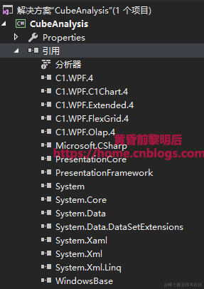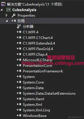 1、新建WPF项目,名称CubeAnalysis,引入C1控件