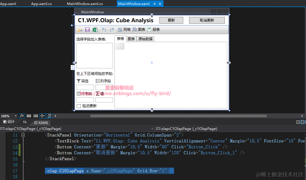 2、 在UI界面中先要引入C1的引用xmlns:olap="clr-namespace:C1.WPF.Olap;assembly=C1.WPF.Olap.4" xmlns:c1="schemas.componentone.com/winfx/2006/…"