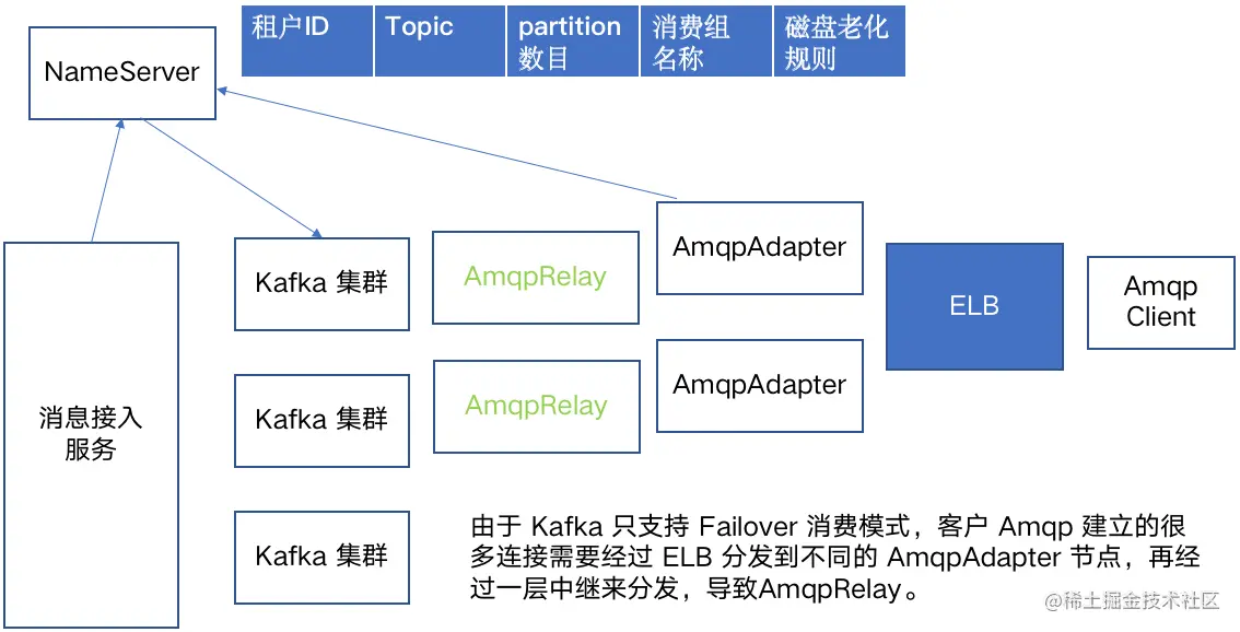 2020 年 5 月,为提升产品的竞争力,我们计划让客户通过 AMQP 协议来接收流转数据。AMQP 协议的客户端接入更加复杂,而客户可能会将 AMQP 客户端集成在手机端,每天定时上线两小时,这种情况下,我们需要保证客户在使用时不会出现数据丢失,因此要求消息中间件支持多于规则数量的 topic(有些客户单规则下数据量大,单 topic 无法支撑)。目前,我们的规则数量已超过 3 万,预计很快会达到 5 万,并且还会继续增长。