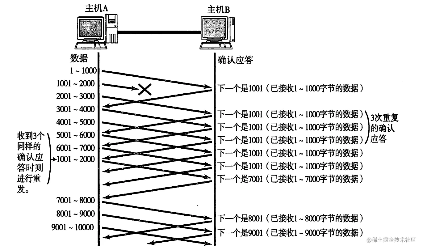 但是主机 A 未收到 B 发来的确认应答, 也可能是因为 ACK 丢失了;因此主机 B 会收到很多重复数据。那么 TCP 协议需要能够识别出那些包是重复的包,,并且把重复的丢弃掉。这时候我们可以利用前面提到的序列号, 就可以很容易做到去重的效果。