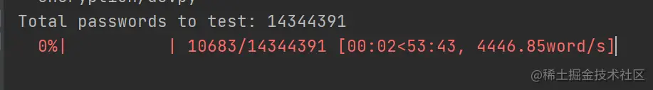 我们读取了整个单词表,然后仅获取要测试的密码数量,这对于tqdm证明是有用的,因此我们可以跟踪暴力破解过程中的位置,以下剩余的代码: