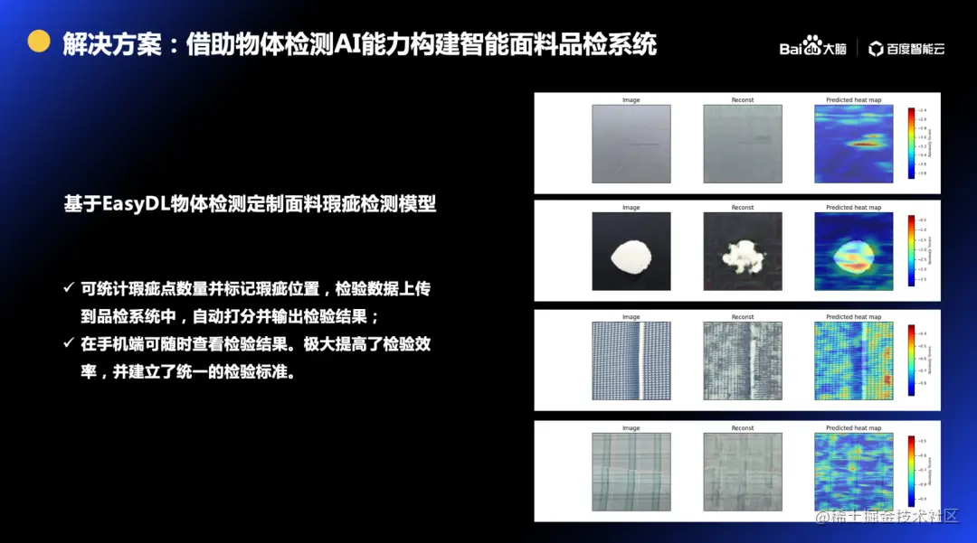 日前,在百度公司举办的“百度大脑开放日·福州站”智能制造与安全生产专场中,江西睿视智能装备有限公司总经理郭奕辰分享了其公司创新使用百度 AI 技术,帮助纺织企业完成了精准找面料、智能检面料的产业升级探索,在降低产业链成本、提高工作效率方面发挥了重要作用,引发了行业关注。