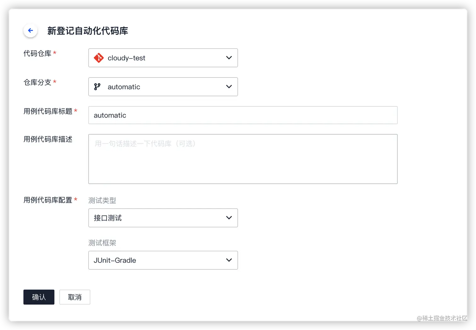 - 首先,在 CODING 自动化用例库中进行自动化代码登记,确定自动化代码已经存在于代码托管中,对已经存在的自动化代码库进行登记,并设置相关的语言/框架。