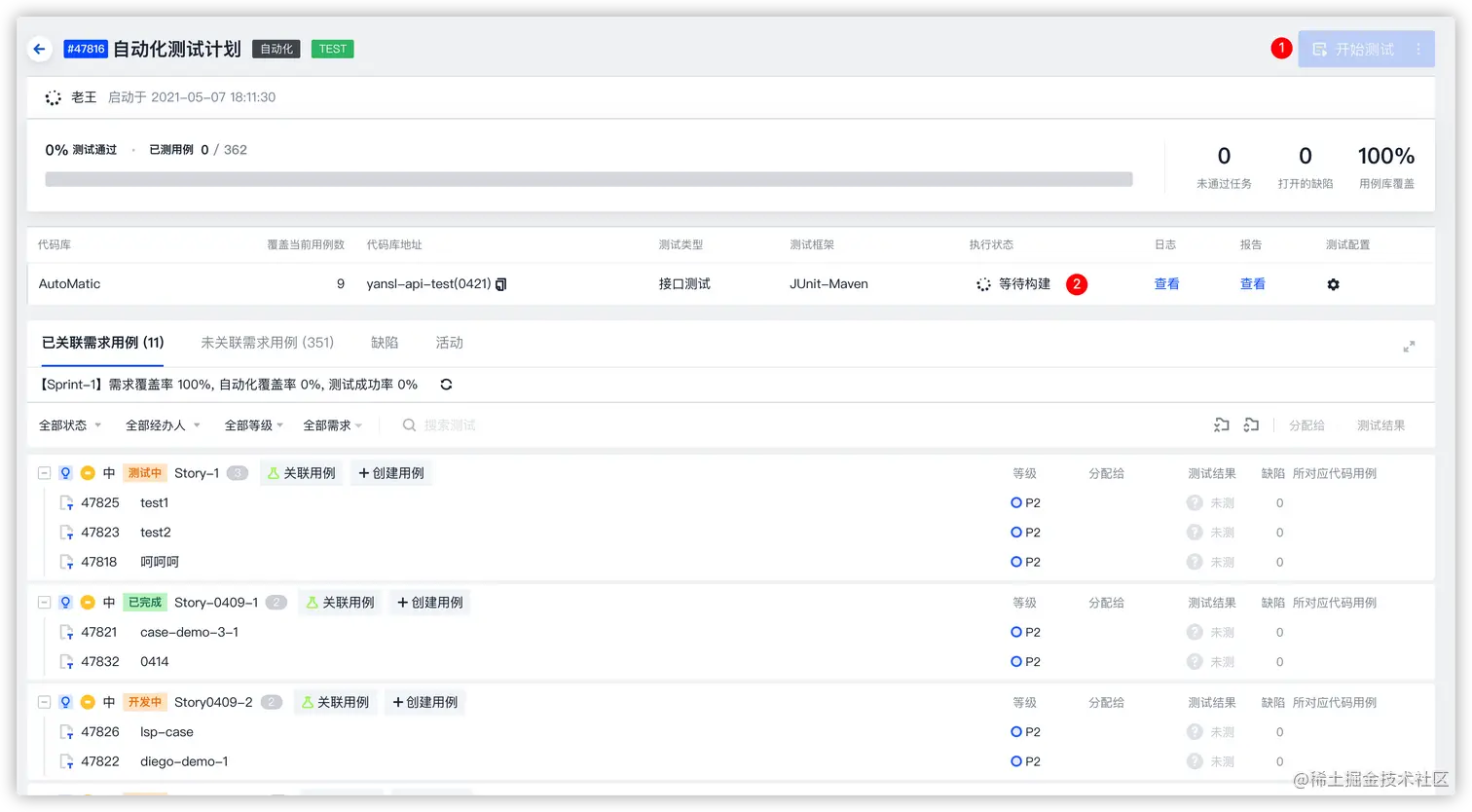 接下来,让我们看看如何在 CODING 测试管理实现“自由”地执行测试: