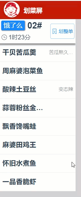 选中菜品后,进度条渐进加载,2秒后完成确认。同时,允许随时取消选中,再重新进行划菜。