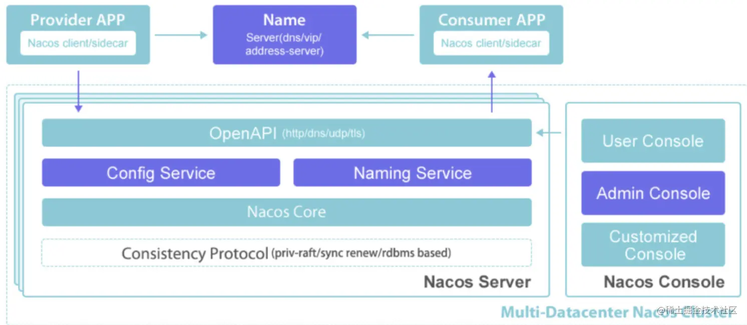 - console模块: 主要是实现与前端进行交互.具有权限校验、服务状态、健康检查等功能;