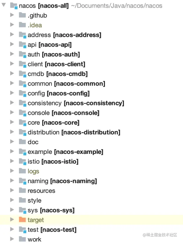 Nacos版本基于1.4.0版本,整体的项目结构如下:
