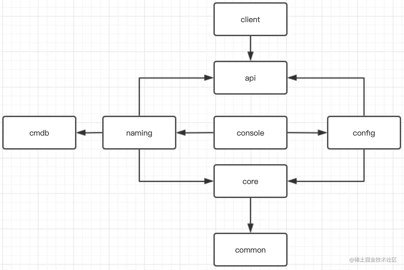 我觉得上面8个模块相对来说是比较重要,对于大家研究Nacos源码是必须要掌握的,关系间的依赖如下: